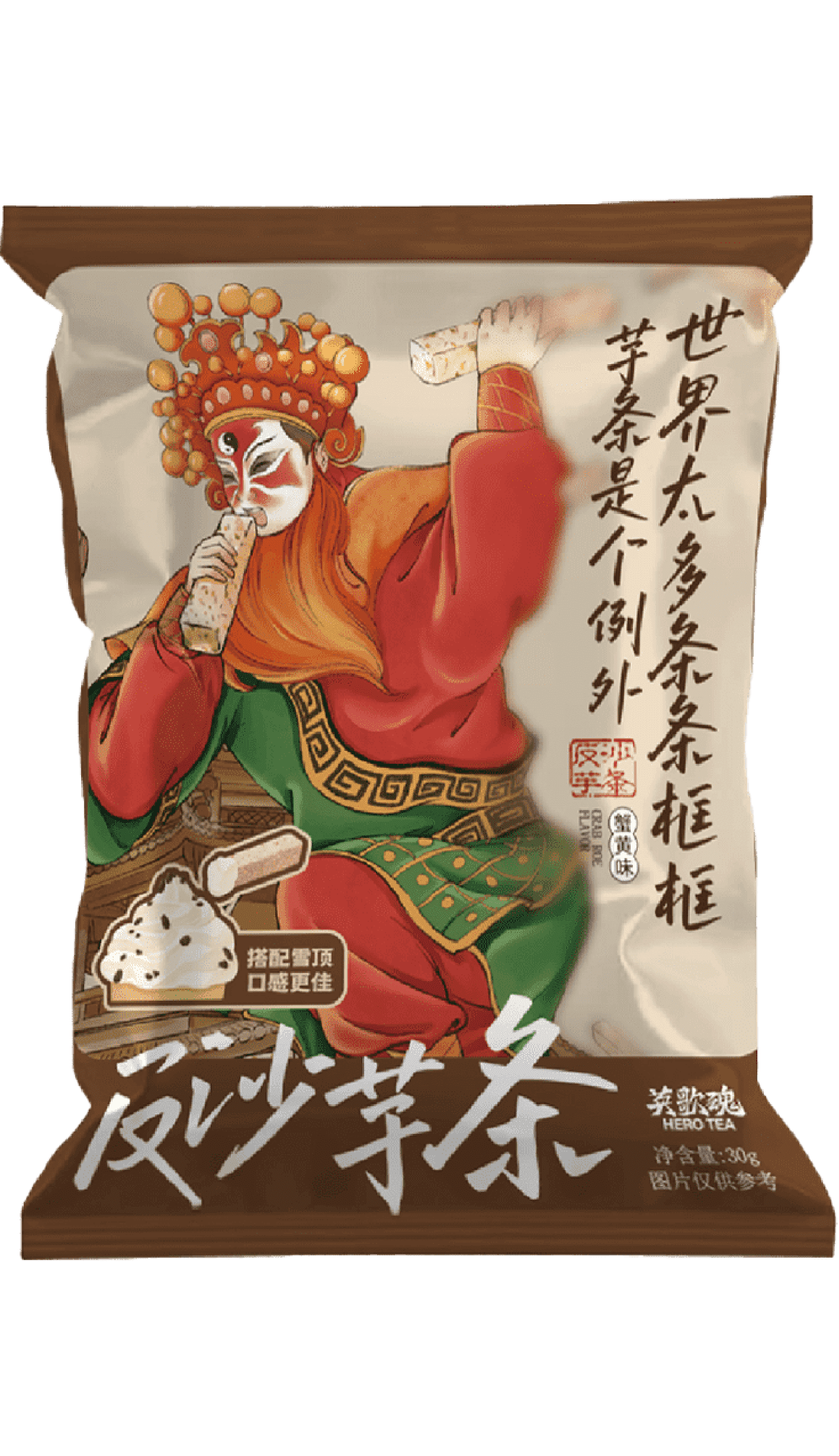芋头切制成条,秘制潮汕反沙风味。蟹黄味浓郁,酥脆咸香。